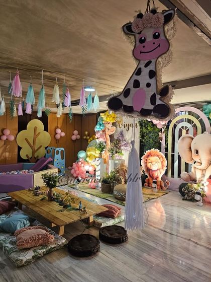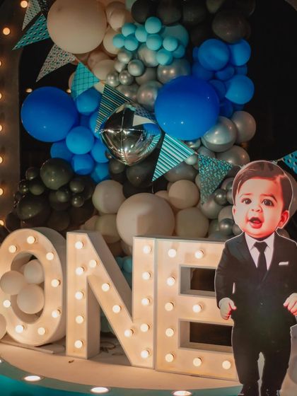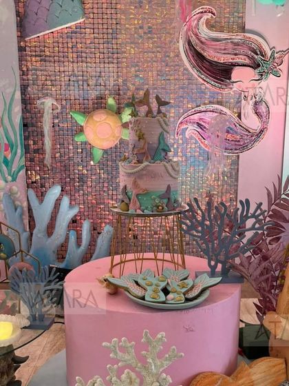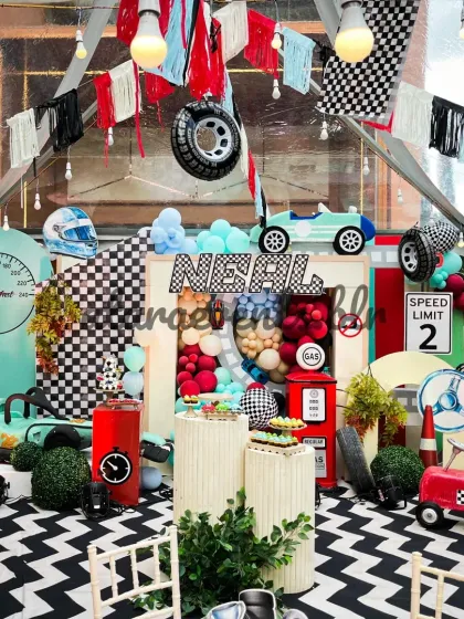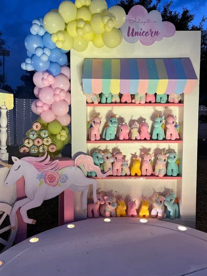 - Custom party decor for kids: balloon arches, 3D props, sequin walls, and themed tables.