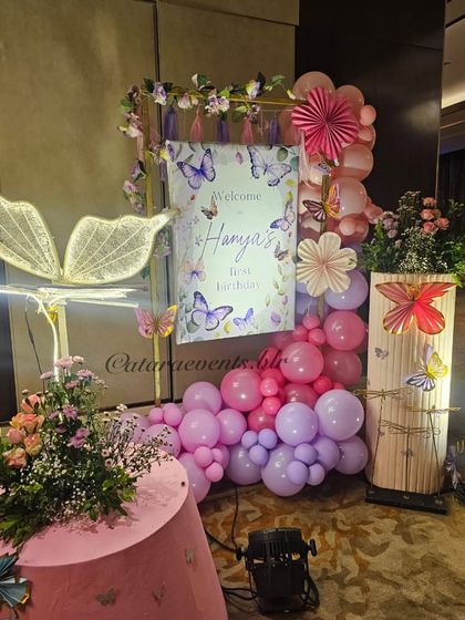 I bring whimsical butterfly gardens to life with delicate pastel palettes, floral arrangements, and magical light-up butterfly props. These parties often include personalized photo displays and interactive stations like caricature artists.