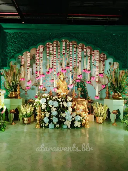 - Fresh Florals: Extensive use of local fresh flowers like Marigolds and Tuberoses for garlands and hangings.