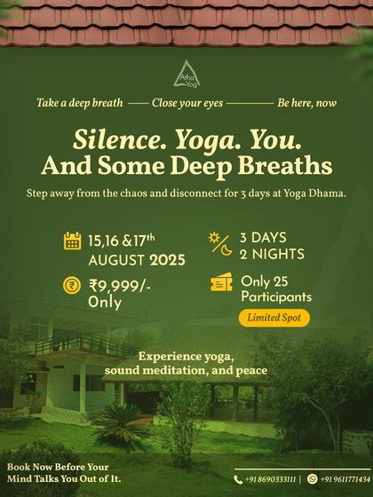 - Silent Retreats near Srirangapatna: We spend 3 days in guided silence, practice Hatha and Yin yoga, cyclic meditation, soulful bhajans, and eat simple satvik food.