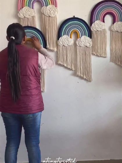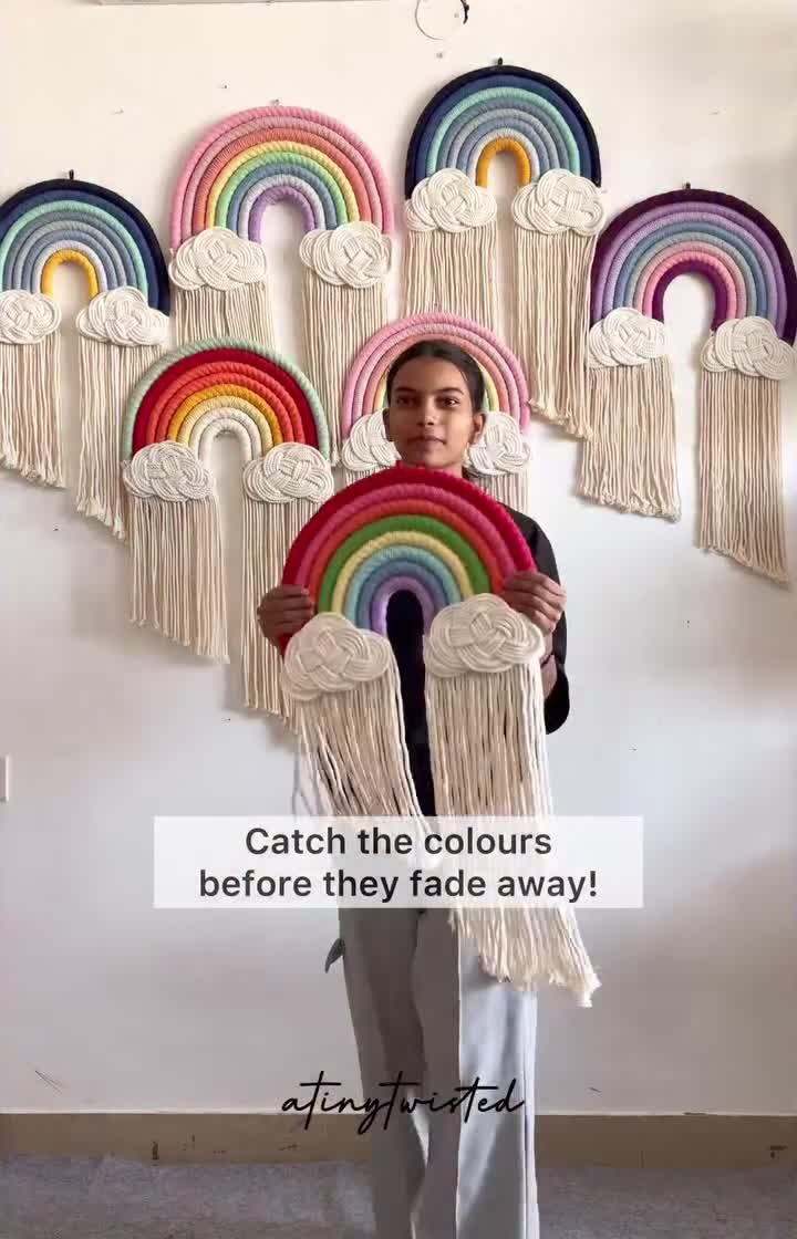 Brighten any corner with my handmade macramé rainbows. These are a super popular choice for adding a playful and boho touch to nurseries and kids' rooms. I create them in various color palettes, from classic brights to cool blues and warm sunset tones, each finished with intricately knotted clouds.