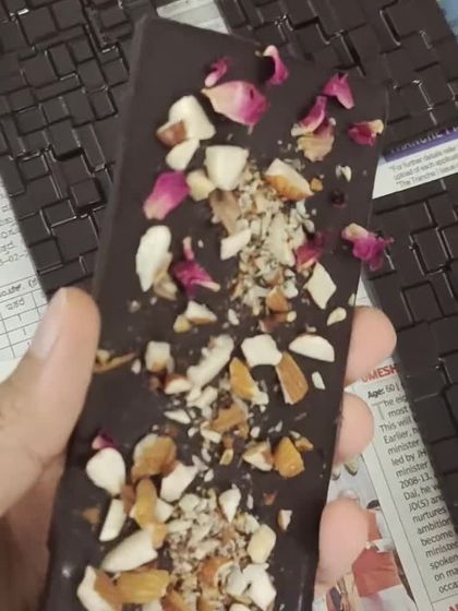 - Chocolate: 1 Handcrafted artisan bar (approx 80g) with rose petals and almonds.
