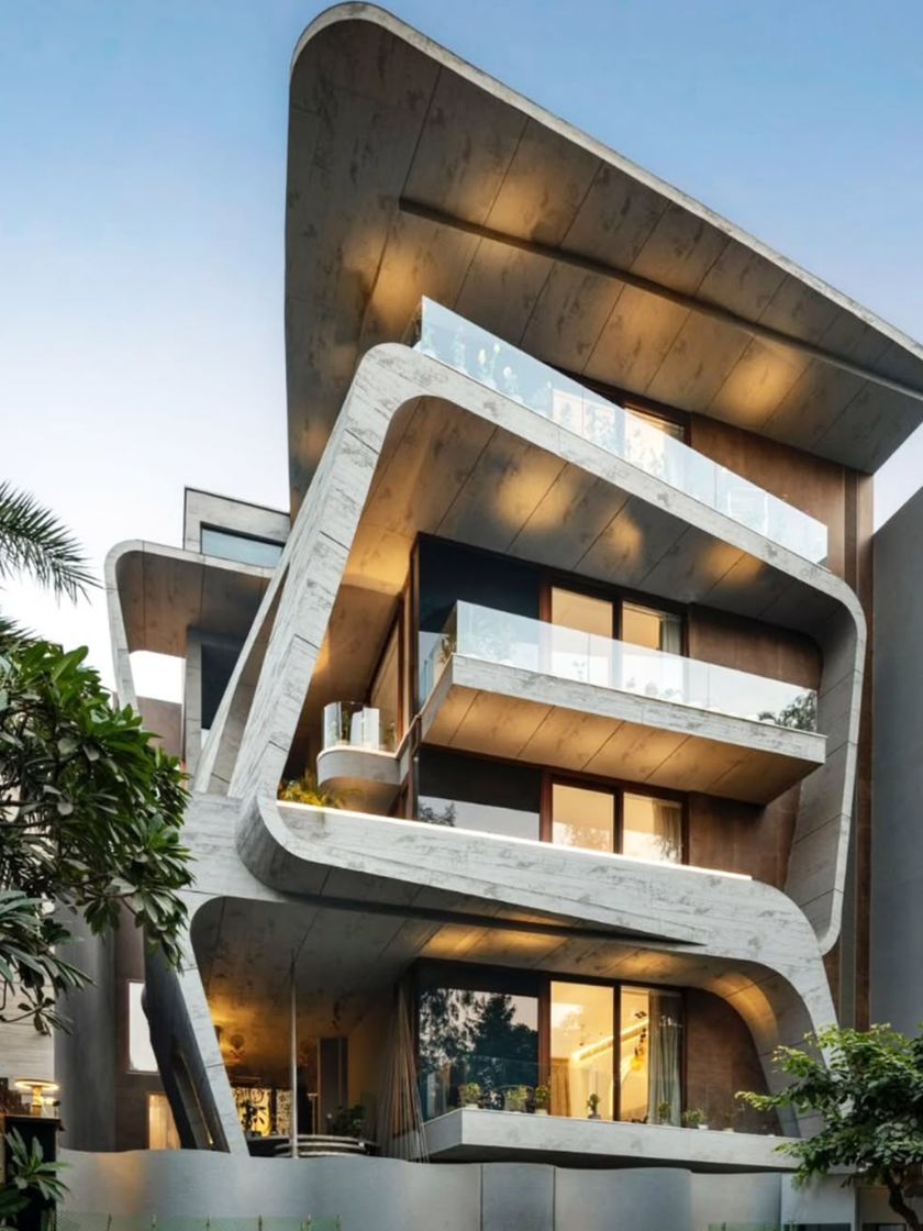 I see architecture as functional art. This gallery showcases residential facades where I use bold, fluid forms in concrete, wood, and stone to create buildings that make a powerful statement while harmonizing with their environment.