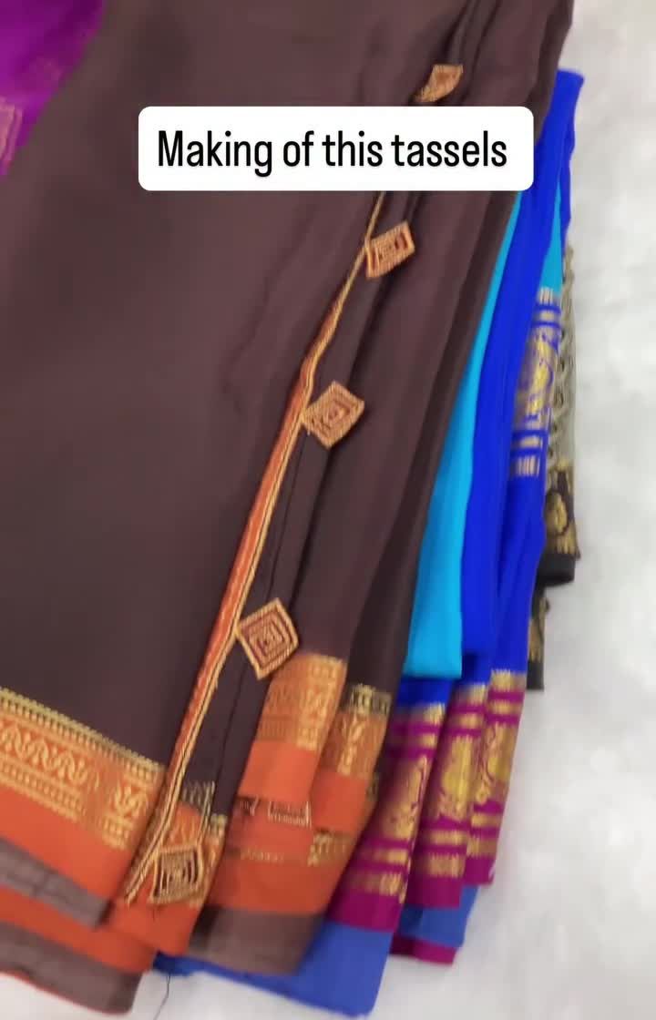 Explore my signature handcrafted tassels, from traditional crochet and baby kuchu to modern embroidered and beaded designs. Each tassel is custom made with a protective backing to match your saree's color and border, ensuring durability without snagging the fabric.