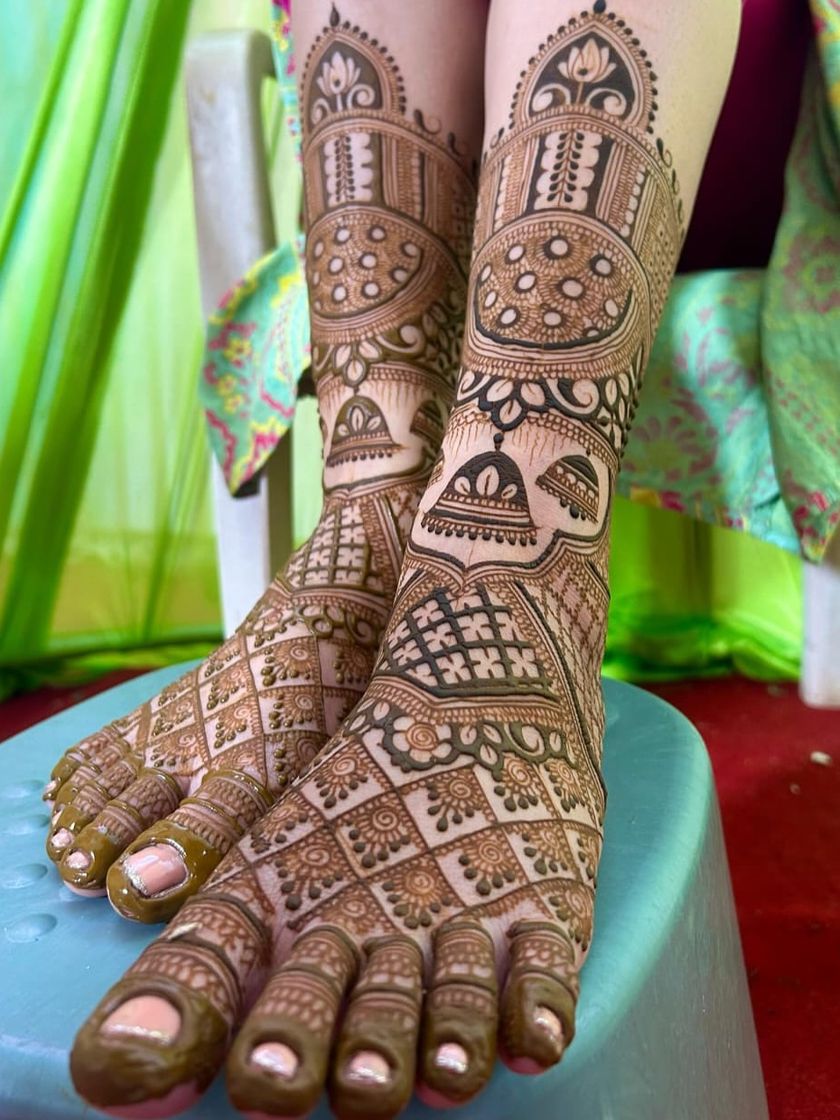 I extend the bridal artwork to the feet and legs, matching the intricacy of the hand designs. From delicate ankle chains to full coverage up to the knees, every design is crafted to complement your bridal look perfectly.