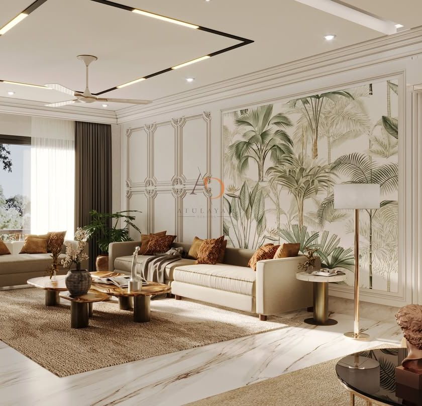 This is where life's moments unfold. I design living and dining areas that are both welcoming for guests and comfortable for daily life, balancing statement pieces with practical layouts. You will see a variety of styles, from modern glam with curved sofas to neo-classical elegance with detailed wall mouldings.