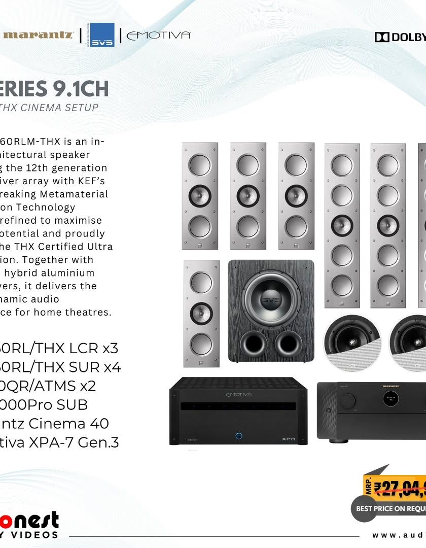 A great audio system needs a powerful and reliable core. This is where high-quality amplifiers and processors come in. I use trusted brands like Marantz and Emotiva to power your speakers and offer pre-designed home cinema packages that guarantee top-tier performance and seamless integration.