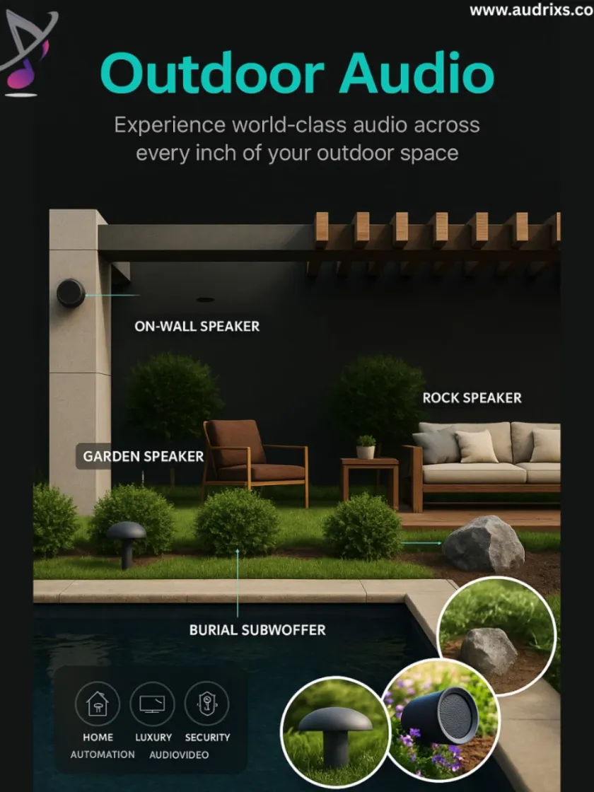 We specialize in designing and installing high-performance outdoor audio systems that blend seamlessly with your landscape. Our solutions include discreet garden speakers, powerful rock speakers, and weatherproof on-wall units for complete and even audio coverage across your property.