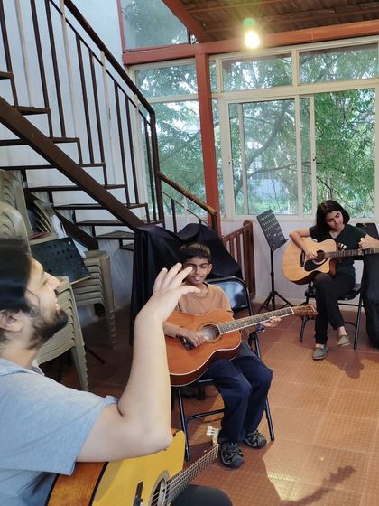 We run a beginner music camp for kids where they try guitar, piano, and singing in a relaxed setting, join online or at our Bangalore studio, and end with a simple group performance.