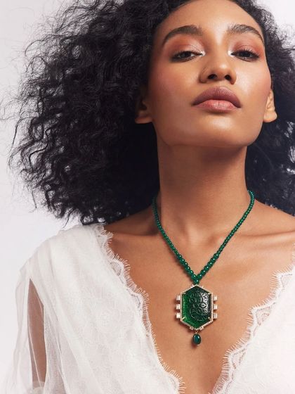 We craft sustainable semi-precious jewelry that blends traditional artistry with modern design. Our collection includes necklaces, earrings, rings, bangles, and brooches featuring lab-grown stones and recycled materials.