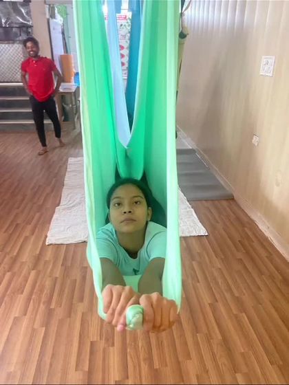 Classes are conducted on weekends with personalized attention and proper guidance for each participant. Our studio is equipped with colorful hammocks and all necessary props for a safe practice.