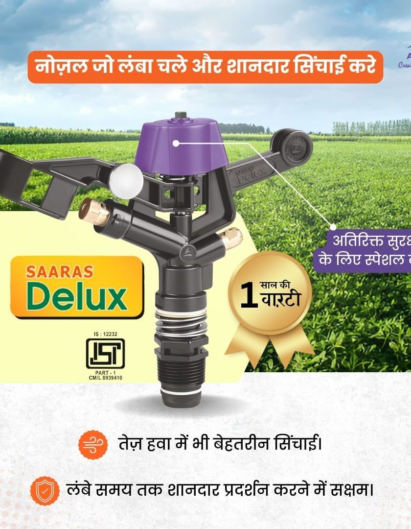 We offer a comprehensive range of sprinkler systems designed for the diverse needs of Indian agriculture. From macro and impact sprinklers like the trusted Saaras series for field crops to mini and micro sprinklers like Robin for vegetables and pulses, our solutions ensure uniform coverage, operate efficiently at low pressure, and help increase yield.