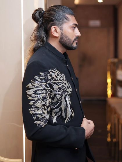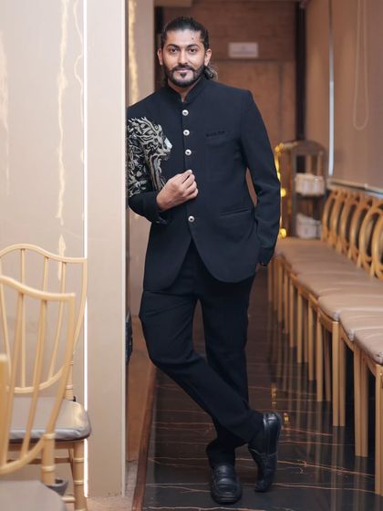 - Designer Jodhpuri Suits: For those who want to look a bit royal, the wine-colored velvet suit is a hit. The black Jodhpuri jacket with lion embroidery is proper hatke (different) - perfect if you want something eye-catching.