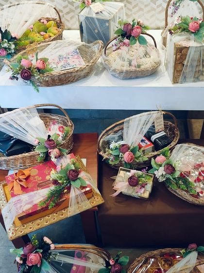 We pack and customize wedding trousseaus, gift hampers, and corporate gifts to match your style, handling everything from jewelry to sweets with personal details and flexible packaging options.