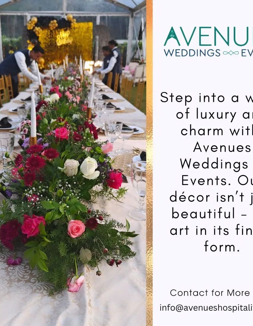 Avenues Weddings & Events is a premier event planning and decoration company based in Bangalore. We are passionate about creating flawless, unforgettable celebrations. This collection includes materials that introduce our brand, our services, and our commitment to bringing your vision to life with creativity and precision.