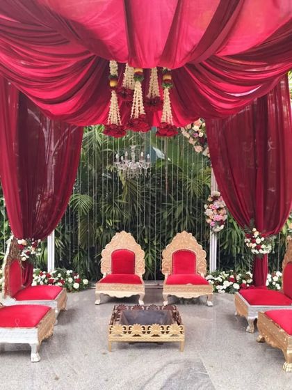 We bring energy and color to your pre-wedding functions. Our designs for Mehendi and Haldi events are all about creating a fun, festive, and photo-ready environment, using everything from traditional marigolds and colorful drapes to quirky seating and personalized details.
