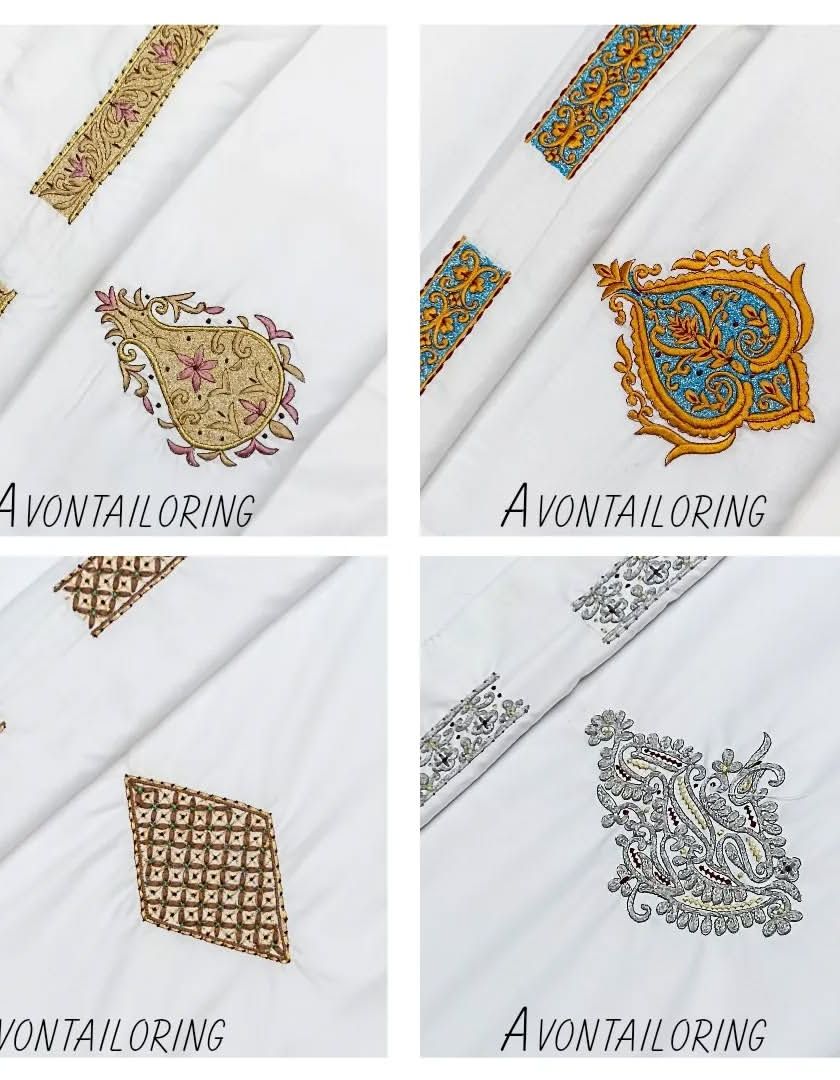 Here is a collection of other embroidery designs and finished pieces from my workshop. Each one reflects my commitment to quality, from the selection of threads to the final intricate pattern.