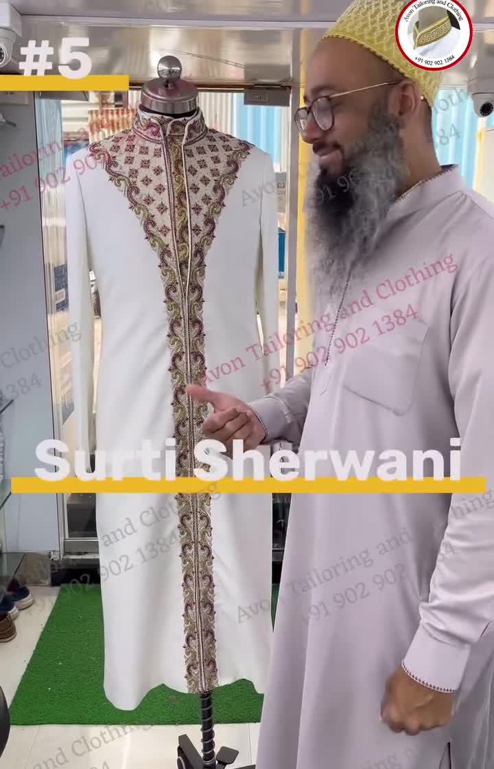 This is my specialty. I create everything from classic Surti sherwanis with heavy handwork to modern, elegant styles for receptions. I can customize any design based on a photo you provide and even match the embroidery to the bride's outfit for a perfect couple look.
