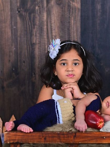 We specialize in capturing precious moments of your newborn through creative themed photoshoots. Our 2-hour sessions include over 60 unique themes from rustic to cultural setups, using professional props like wooden crates and fluffy blankets.