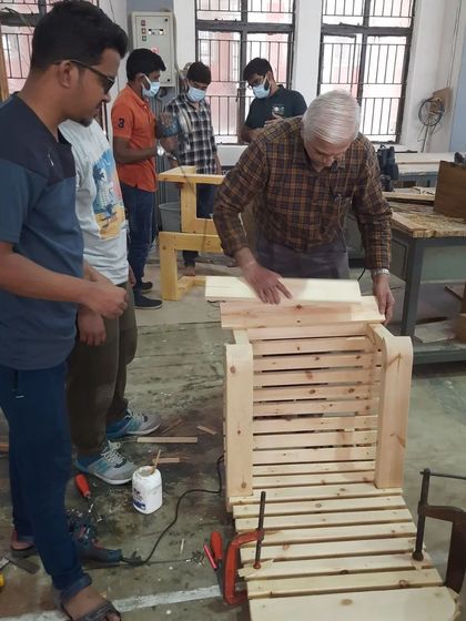 Hostel accommodation available for outstation students. Students get hands-on experience with various wood types and complete practical projects during the course.