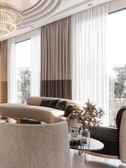 We design living and dining areas that serve as the heart of the home, balancing grandeur with comfort. Our designs often feature double-height spaces for a sense of scale, open-plan layouts for seamless flow, and a rich palette of materials like marble, veneer, and custom fabrics to create an atmosphere of refined elegance.