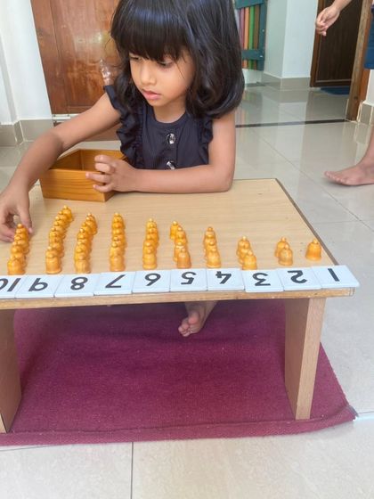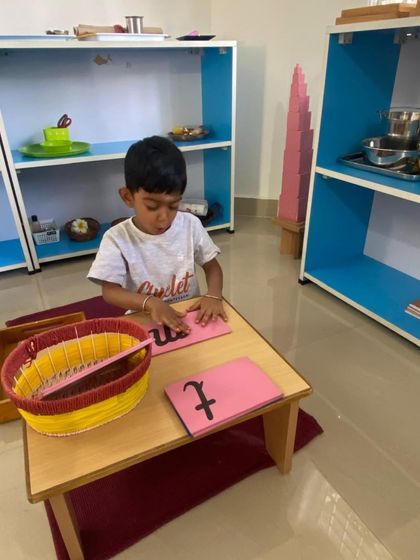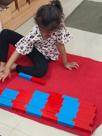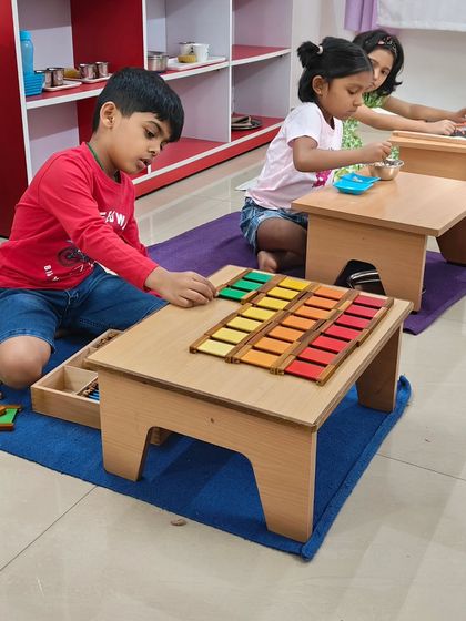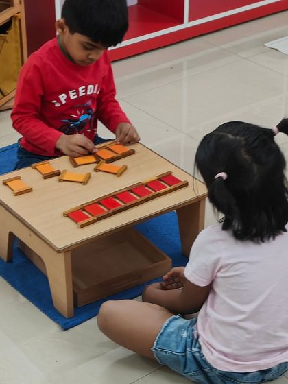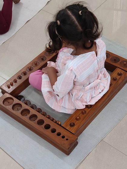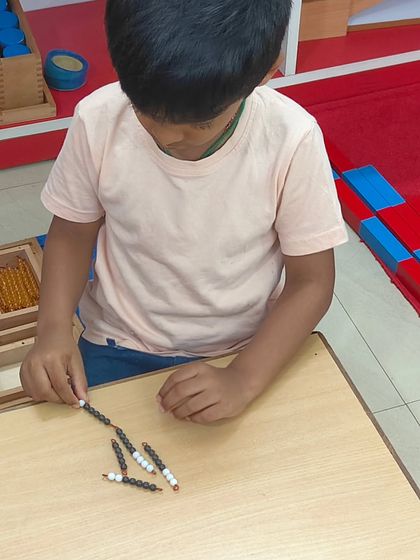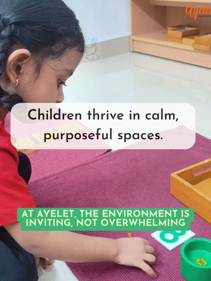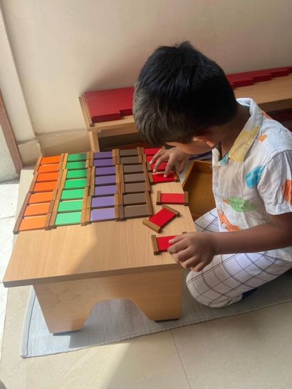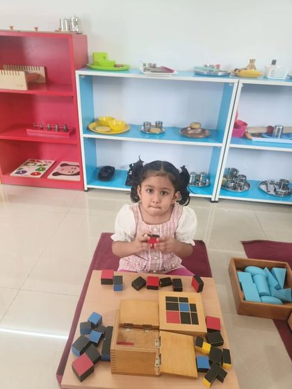 Our classroom is a calm, beautiful, and child-sized world, intentionally designed to inspire curiosity. Here, you will see our scientifically designed Montessori materials, from the iconic Pink Tower to the intricate Bead Cabinet, each with a specific developmental purpose.