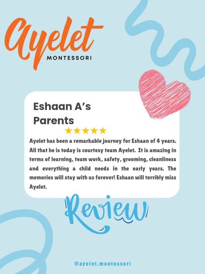 Ayelet was born from a dream to create a true happy place for children. From our humble beginnings in 2017 to the thriving community we are today, our vision has remained the same: to provide an authentic, nurturing Montessori experience.