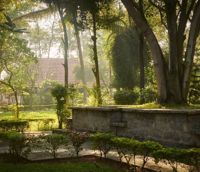 Our 13-acre campus is a healing sanctuary in itself. It is home to over 300 varieties of medicinal herbs, sacred Peepal and Neem trees, a serene lotus pond, and vibrant flora and fauna. We invite you to wander the paths, breathe the fresh air, and let nature nurture you.