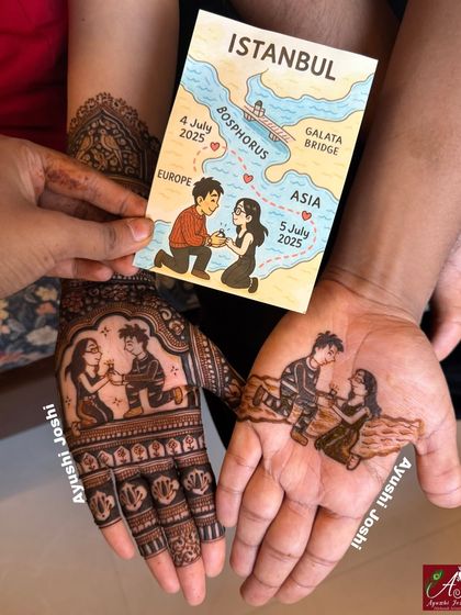 Storytelling Engagement Mehendi - Want your love story inked? I create unique, custom mehendi with city skylines, pets, proposal moments, and more.
