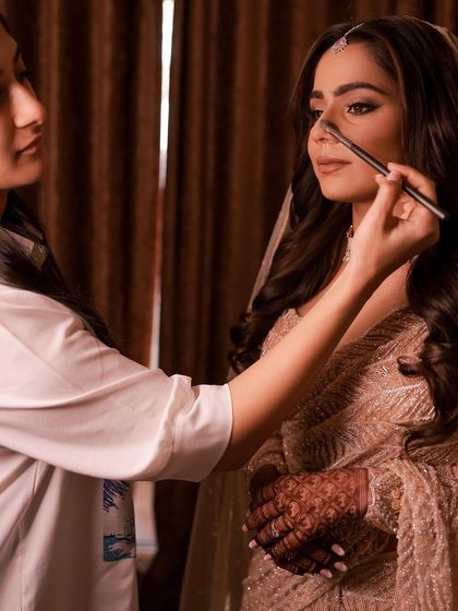 For your evening celebrations, I create glamorous yet refined looks that last all night. Whether you're wearing a sparkling lehenga or a chic gown, the focus is on radiant skin, defined eyes, and a look that feels both modern and you.