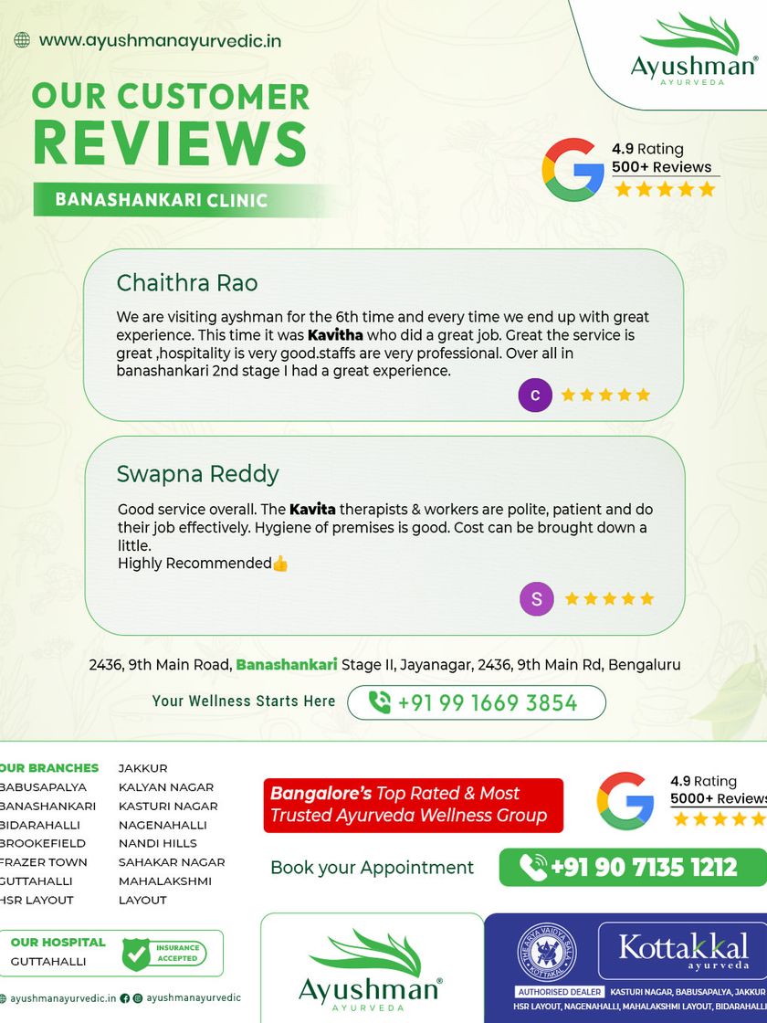 Trust is earned through consistent results and compassionate care. Hear directly from our patients who have found healing and wellness at our clinics across Bengaluru, from our Banashankari branch to Kasturi Nagar and beyond.