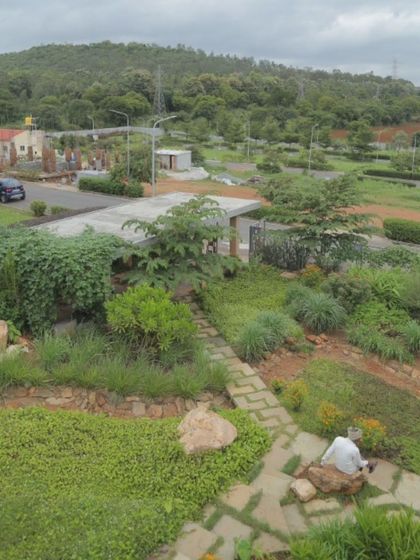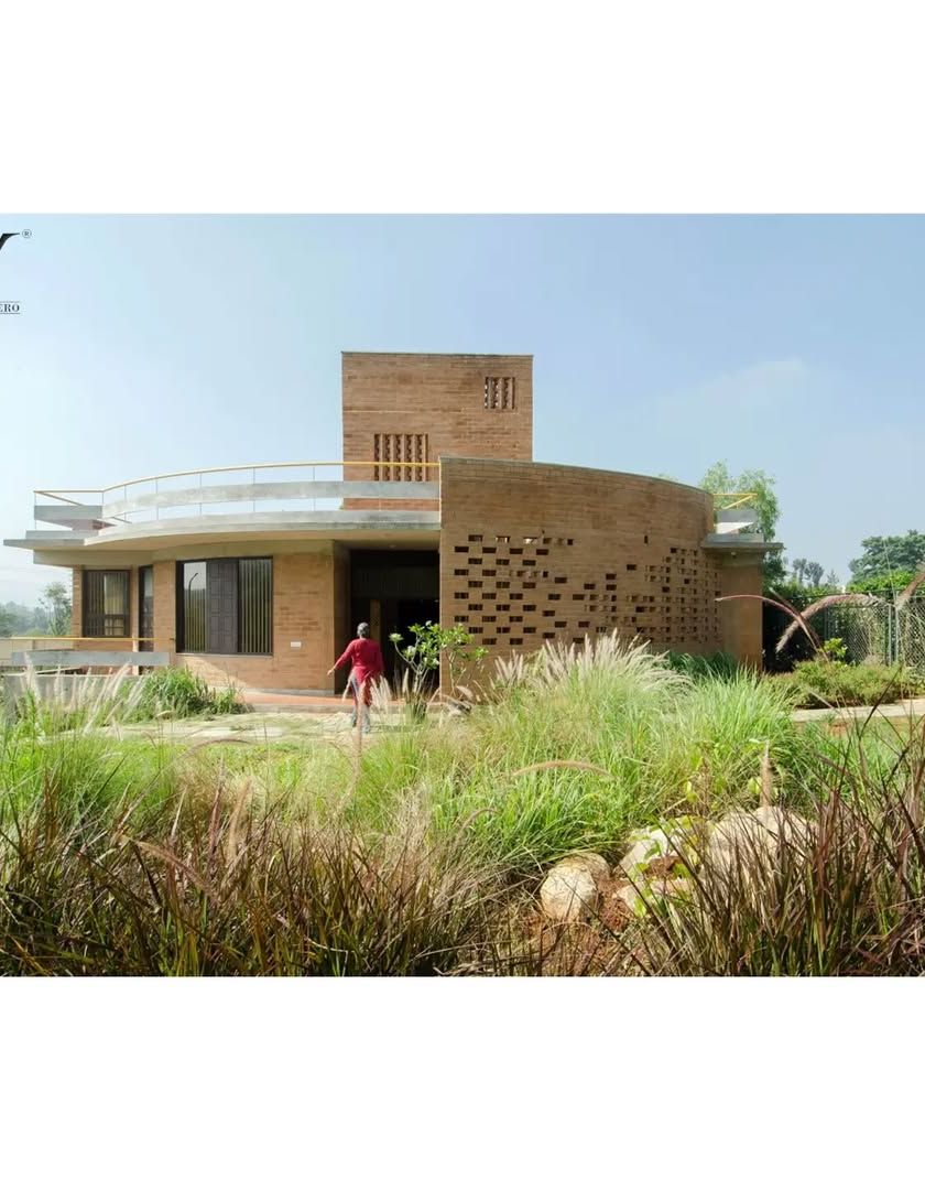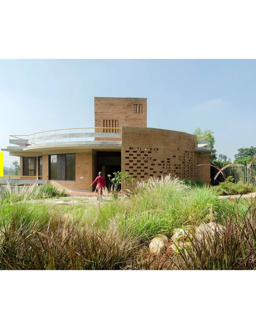 This award-winning project is a case study in energy-efficient, eco-sensitive design. I used locally made Compressed Stabilized Earth Blocks (CSEB) and rammed earth walls to create a structure that is contextually relevant, with perforated 'Jaali' walls that invite birds to nest, making the building itself a part of the habitat.
