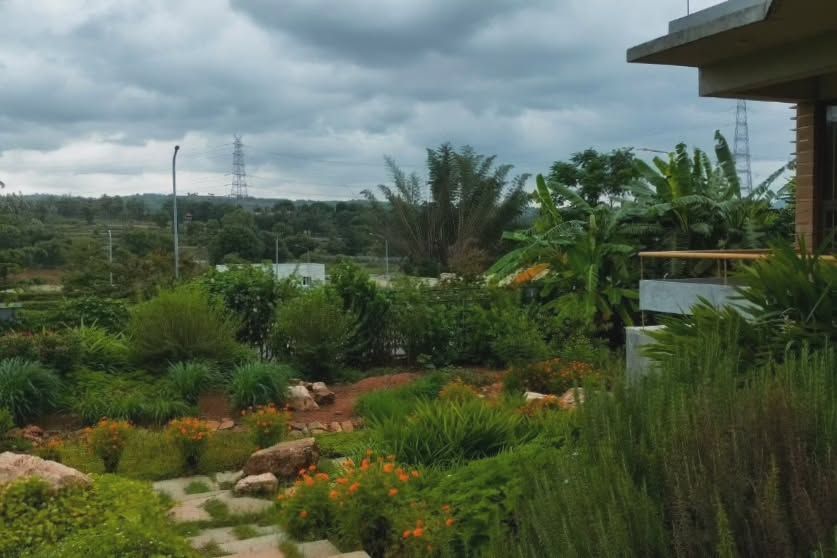 Designed within a mango orchard, 'Aamra' is a farmhouse rooted in simplicity and its connection to the land. The design revolves around the 'Jagli katte' or verandah concept, creating numerous semi-open spaces that blur the boundary between the house and the productive landscape, encouraging a slower pace of life.
