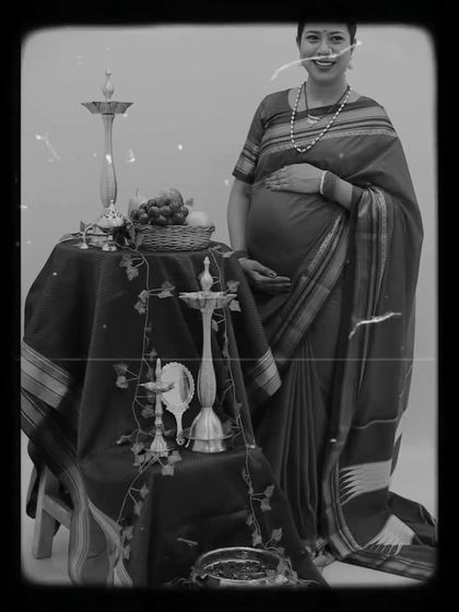 Lately, everyone is loving my traditional maternity photoshoot style. I use a classic Maharashtrian touch - think samai (brass lamp), fruit baskets, and traditional outfits. The whole vibe is 'khup sundar' (very beautiful) and gives a timeless feel.