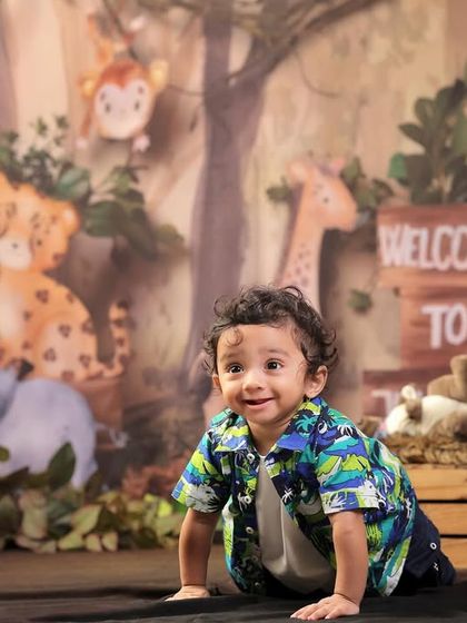 I photograph your baby's first year milestones with 25+ themes, all props included, and you can choose studio or home shoot in Mumbai or Vasai-Virar.