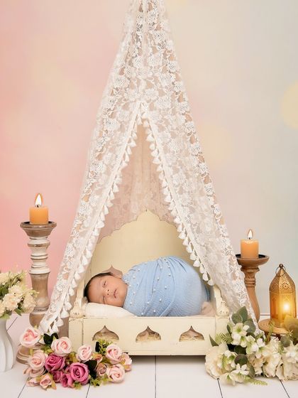 Creative Themes & Setups - From Baby Shark to traditional Indian baby setups, we build fun backdrops that match your kid’s vibe.