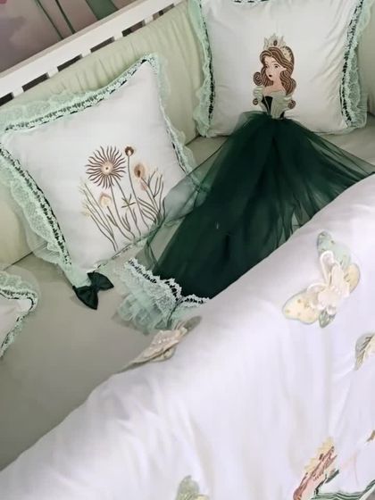I create complete, custom-fit bedding sets to turn your baby's crib into a dreamy and comfortable sanctuary. Each set can include a quilt, braided or pillow bumpers, shaped pillows, a bed skirt, and a matching canopy, all designed around your chosen theme and color palette.