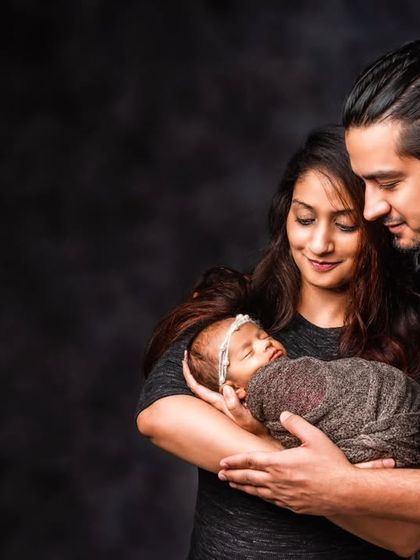 We do newborn photoshoots in our HSR Layout studio with trained safe handling, flexible breaks, lots of props and themes, and space for family and pets.