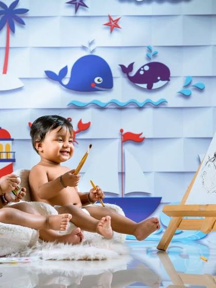 We handle everything for your baby's milestone and cakesmash photoshoots with over 100 creative setups, all props and cake included, and real moments captured in our HSR studio or outdoors.
