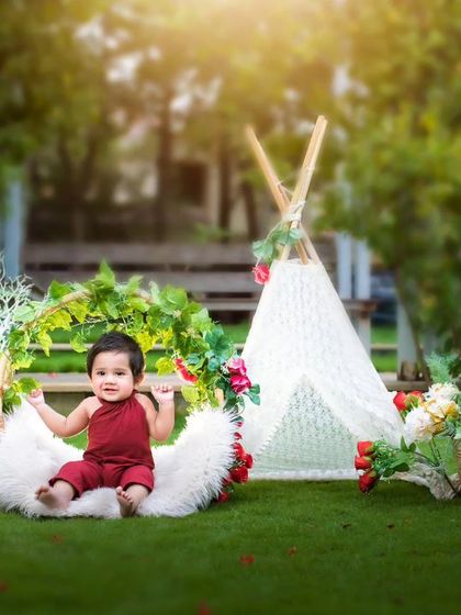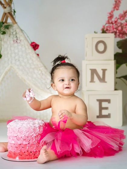 I make your baby's first birthday unforgettable with a fun, messy cakesmash session. Each shoot includes a custom theme and a beautiful cake, and we can end with a playful splash session, all handled by me at my HSR Layout studio.