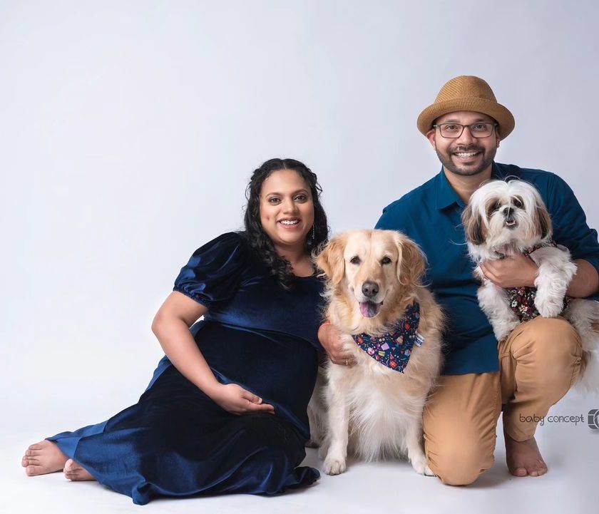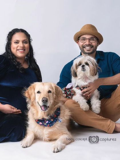 Here's a peek into how I create your memories. This shows my HSR Layout studio setup and my hands-on approach to ensure everyone, especially the little ones and pets, is comfortable and safe during the shoot.