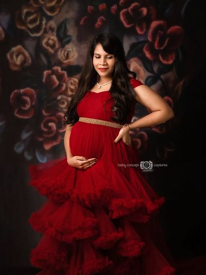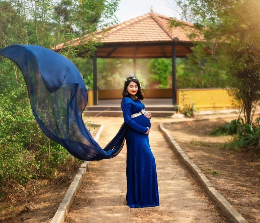 My HSR Layout studio is equipped with over 100 backdrops and professional lighting to create any look you desire. We can produce dramatic, low-key fine art portraits with dark backgrounds or bright, airy images with a light and clean feel. I also have a wide collection of maternity gowns in various colors and styles for you to use.