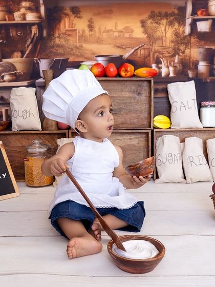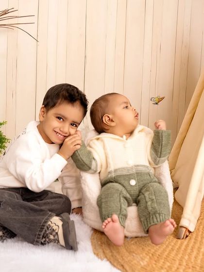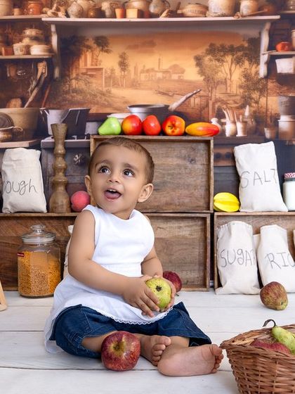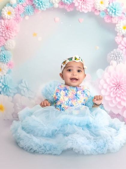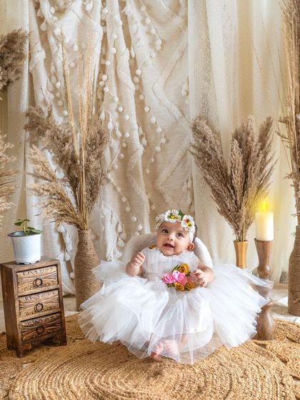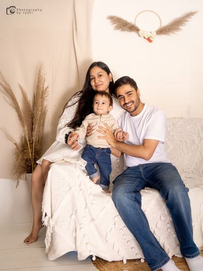 I do themed baby and kids photoshoots with props, costumes, and family portraits, either at my Gurgaon studio or your home, and deliver both edited photos and a video reel.