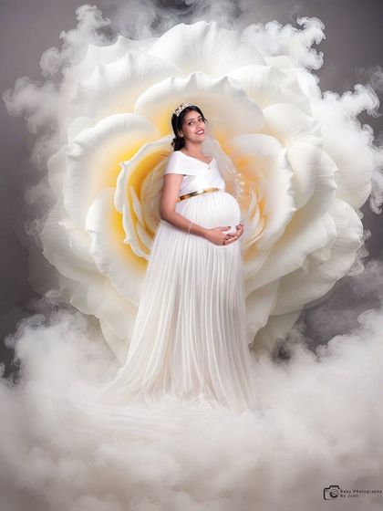 Dreamy, Magical Style - Love using flowing gowns, creative baby props, and artistic lighting for that dreamy maternity photoshoot vibe.