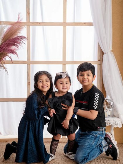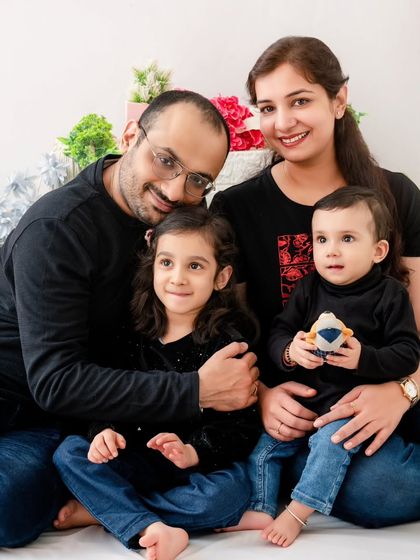 I capture both classic family portraits and real, candid moments in my New Delhi studio, with flexible sessions and your choice of backdrops or themes.