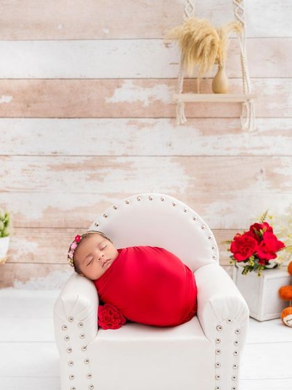 I do newborn photoshoots at my Delhi studio with creative themes, safe posing, and family inclusion, capturing both classic and candid moments.