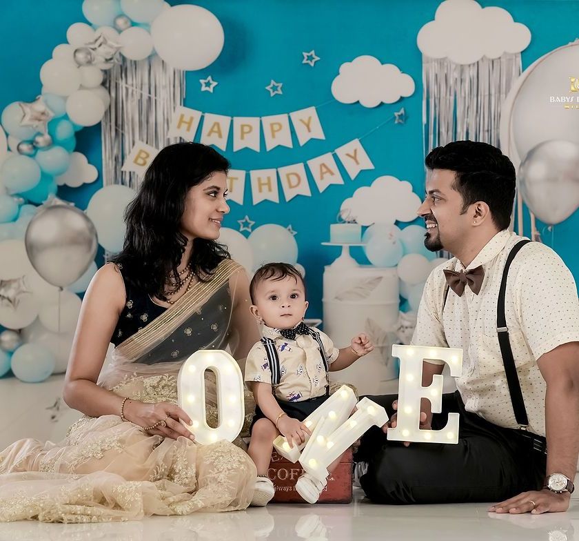 Let's get creative with a themed photoshoot. We offer a variety of fun setups, from celebrating cultural traditions like Janmashtami to playful themes like a little chef or a tiny scholar, complete with unique backdrops and props.