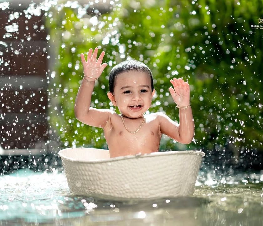 Our water splash sessions are a client favorite and for good reason! Held in our safe and beautiful garden, these shoots are all about fun, laughter, and capturing the pure joy of a child playing in the water. It's the perfect way to get genuine, happy, and energetic photos.