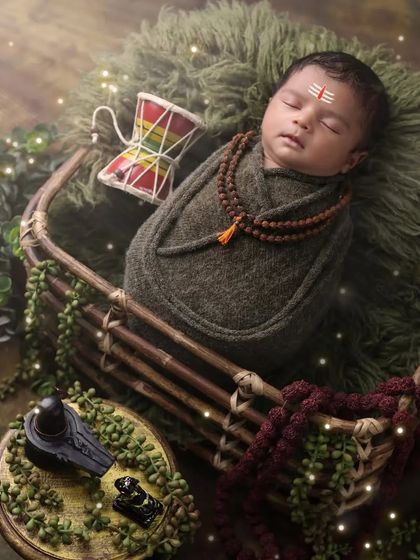 Celebrate your heritage and faith with our beautifully styled cultural photoshoots. We offer respectful and artistic portrayals, including popular themes like little Mahadev (Shiva) and little Krishna, using authentic props and setups.
