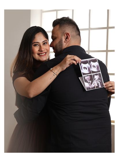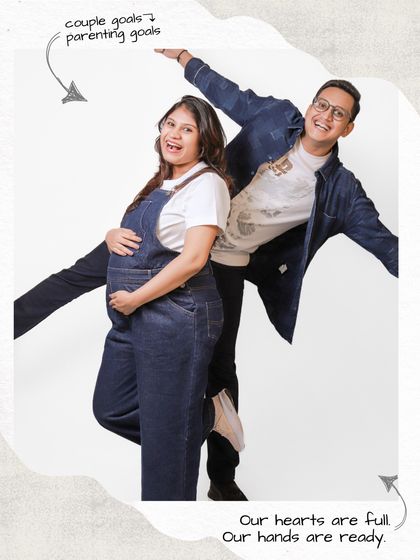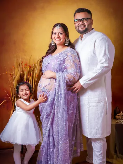 You decide who's in the frame. Solo mom-to-be portraits, couple shots, or a full family maternity session with older siblings - sab chalta hai (everything works).